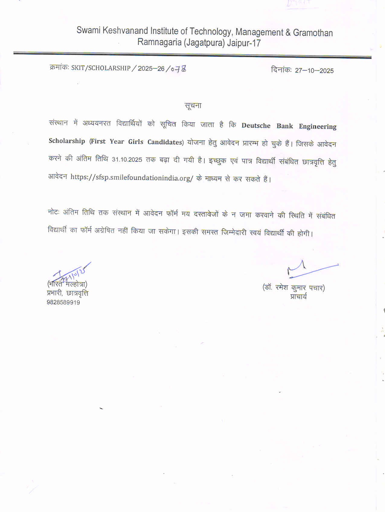 | 27.10.2025 | Notice regarding Deutsche Bank(Smile Foundation) Scholarship Portal Date Extended | View/ Download | |