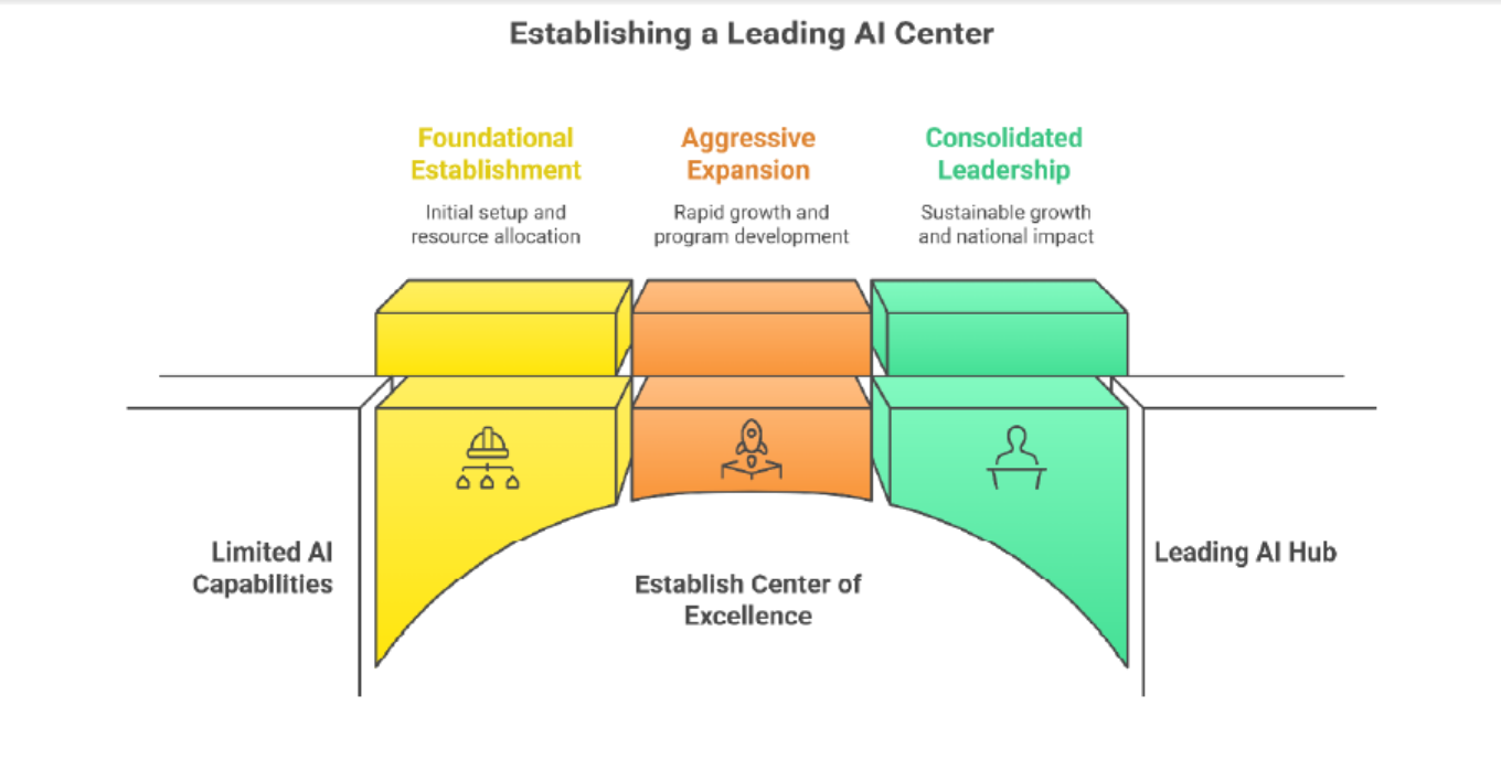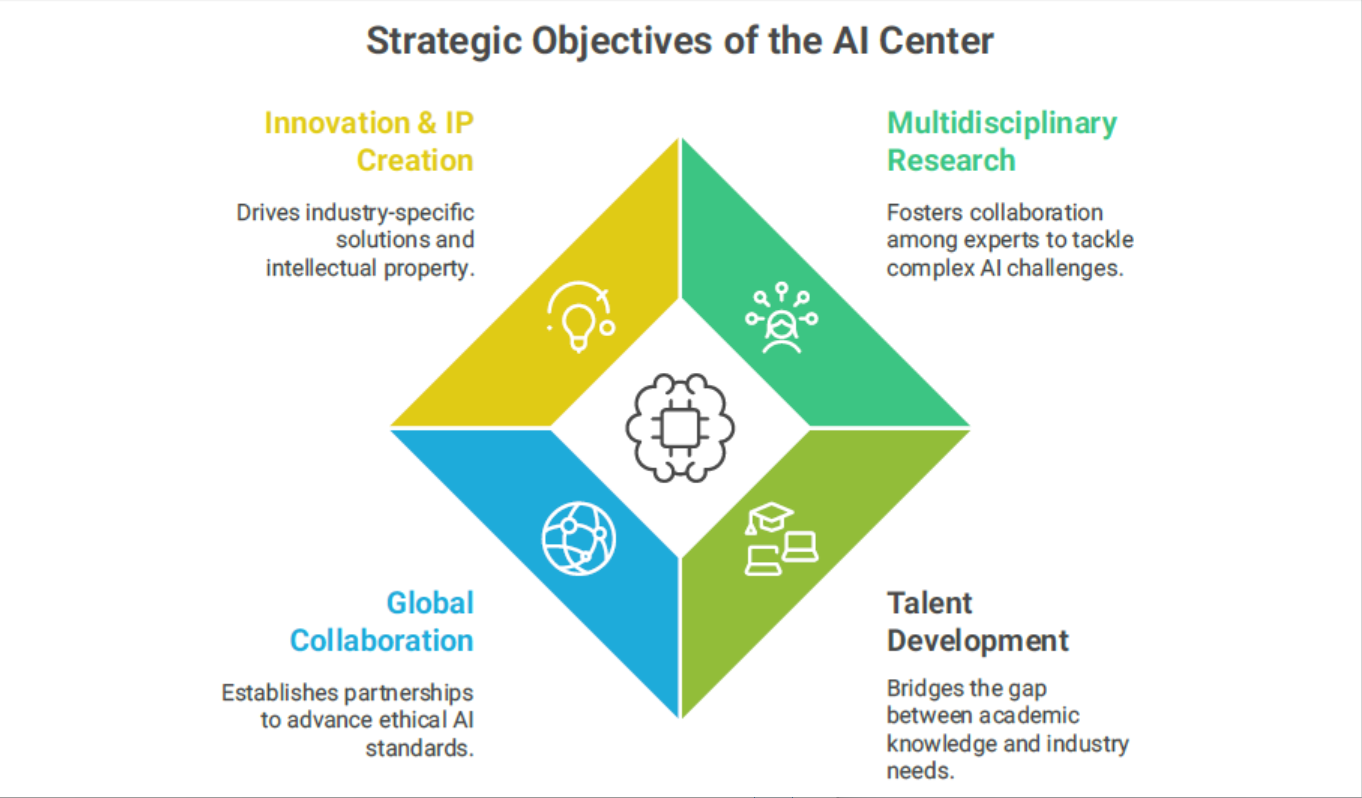 The CoE is dedicated to bridging the significant gap between academic knowledge and industry requirements by providing comprehensive skill development and training. Through an immersive curriculum of workshops, advanced certification programs, intensive hands-on projects, and dedicated mentorship, we will empower students and professionals with the practical, cutting-edge expertise that is in high demand. Furthermore, the Center aims to foster global collaborations, recognizing that the challenges and opportunities of AI transcend national borders. We will proactively establish and nurture strong, collaborative relationships with leading national and international academic institutions, pioneering industries, and influential policymakers. These partnerships are vital for facilitating joint research, enabling the fluid exchange of knowledge, and collectively advancing the development of ethical AI standards and solutions on a global scale.
